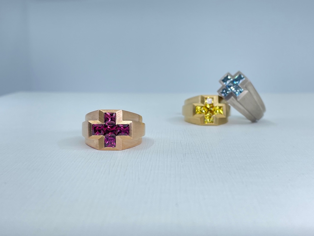 So vielfältig wie unsere Kundschaft, so einzigartig ist das individuelle Schmuckdesign, das wir für jeden einzelnen unserer Kunden anfertigen. Jedes Stück ein Unikat – handgemacht im respektvollen Umgang mit den Rohstoffen, die uns zur Verfügung stehen; ob Gold oder Silber, Rubin oder Diamant. Bei Geträumte Taten legen wir besonders viel Wert auf die Qualität unserer Materialien, damit Ihr Schmuckstück so kostbar wird, wie die Idee, die hinter ihm steckt. Dank unserer jahrzehntelangen Erfahrung im Schmuckdesign ist die hochwertige Verarbeitung Ihrer Stücke selbstverständlich. Vertrauen Sie auf feinste Handwerkskunst und unseren Mut, über Grenzen hinauszudenken – für charaktervolles Schmuckdesign ganz nach Ihren Wünschen.