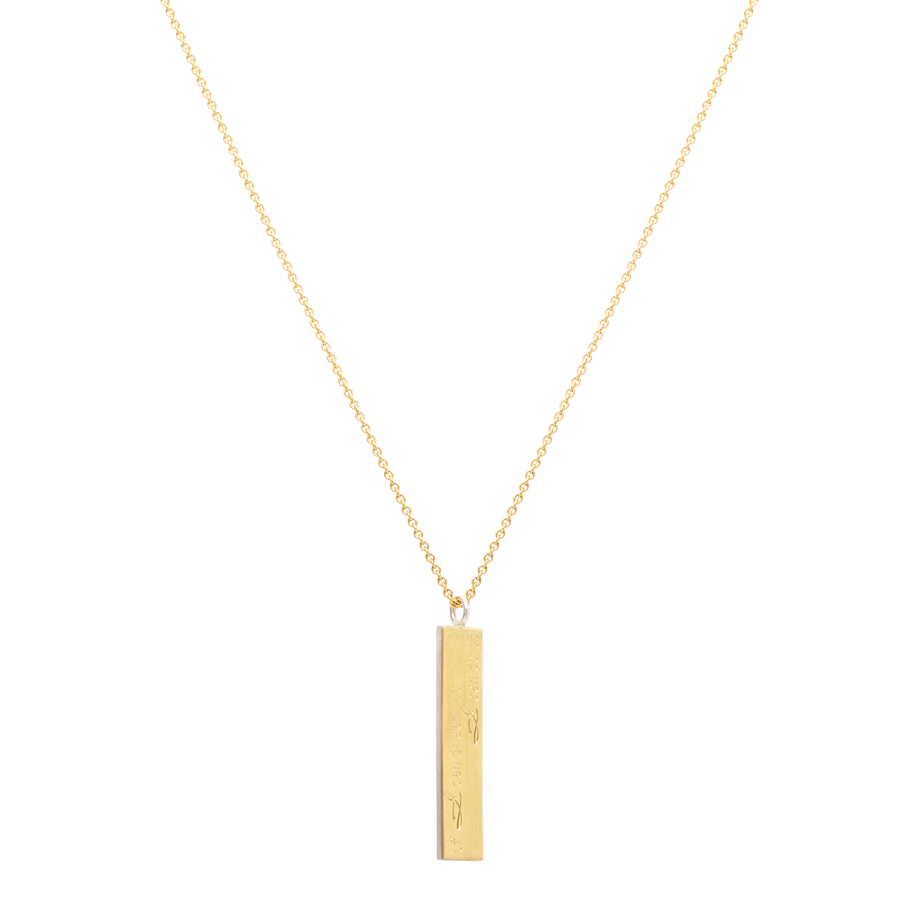 Unser Easy Stripe Anhänger ist ein eleganter rechteckiger bicolor Anhänger aus 925 Sterling Silber mit einer 900er GelbGold Auflage. Auf den Anhänger ist von Hand graviert: If I can dream it, I can do it. Die Kette ist aus Tombak golddoubliniert und 43cm lang.
