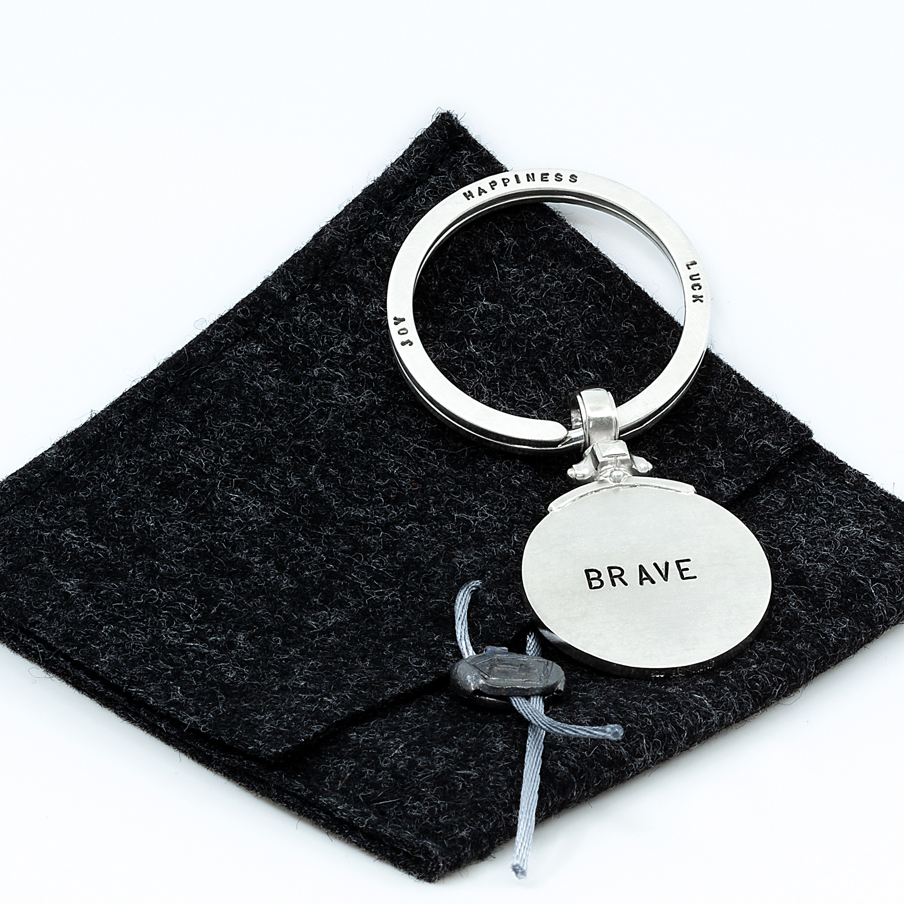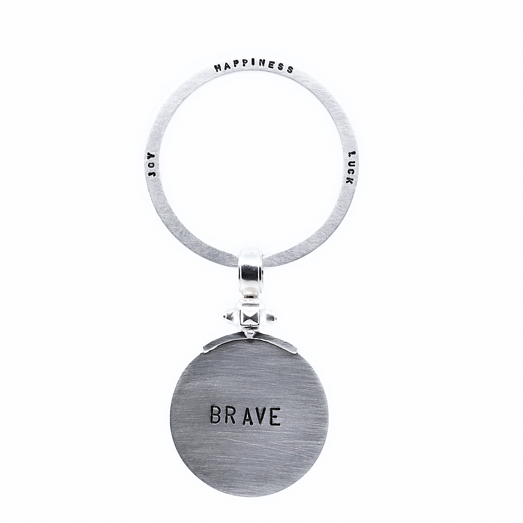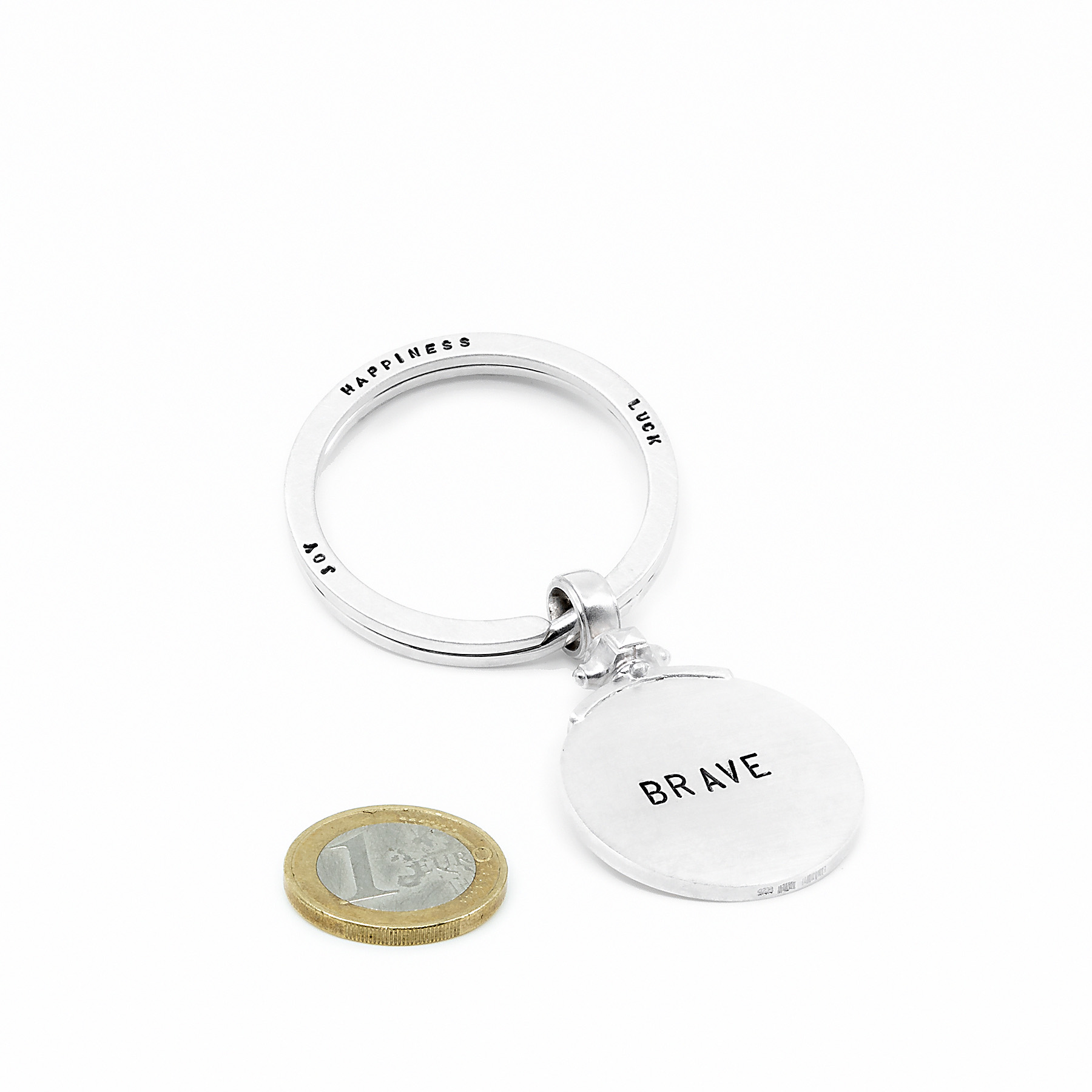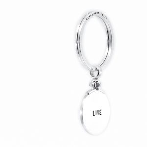 Schlüsselanhänger LIVE BRAVE 925 SterlingSilber mit groszem Spaltring und von Hand punziertem Text